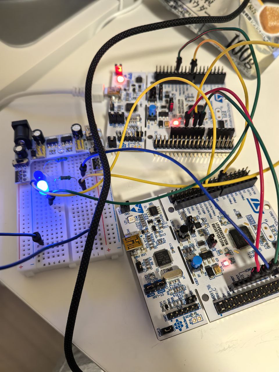 Before designing a custom PCB, I ordered STM32 Nucleo development boards to prototype with. These boards are great because they come with an onboard debugger and break out all the MCU pins for easy experimentation.
